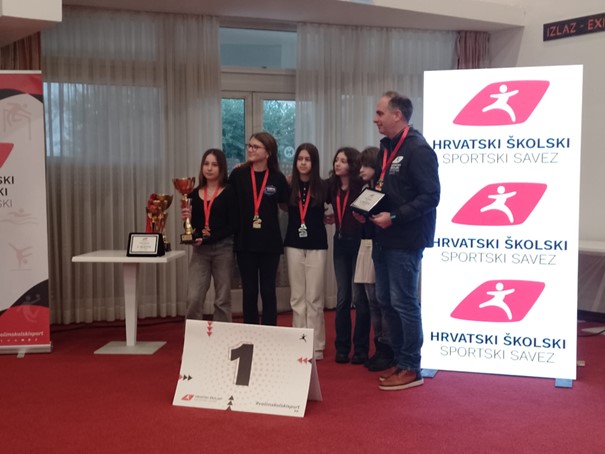 Naša ženska ekipa u šahu doista je nešto posebno jer su drugu godinu zaredom postale prvakinje Hrvatske u šahu. U 9 napetih mečeva 8 puta su pobijedile i samo jdnom, u prvom kolu, odigrale neriješeno. Nisu se predavale, nisu remizirale nego su svaku partiju igrale do kraja dajući sve od sebe. Evo njihovih imena: Ines Košar, 7.e – kapetanica sa stopostotnim učinkom, 2) Vilka Kubanović,6.b – pobijedila u 8 partija od 9 i dala jednu stabilnost ekipi, 3) Amalia Crevar,6.f – svojim sjajnim igrama donijela stabilnost na četvrtoj ploči, 4) Izabela Sarzynski,5.d – nije igrala puno, ali donijela dva vrlo važna boda, 5) Eva Kire, 6.c- pobjedom u zadnjem kolu potvrdila dominaciju naših cura na ovom turniru. Isto tako, na ovom turniru voditelj je bio Jan Zamostni koji je svojim iznimnim znanjem šaha i pedagoškim umijećem vodio naše cure ovom sjajnom uspjehu. Bravo cure i hvala za sve što ste napravile do sada, a s obzirom da ova ekipa ostaje na okupu još slijedeću godinu, radujemo se novim šahovskim uspjesima.